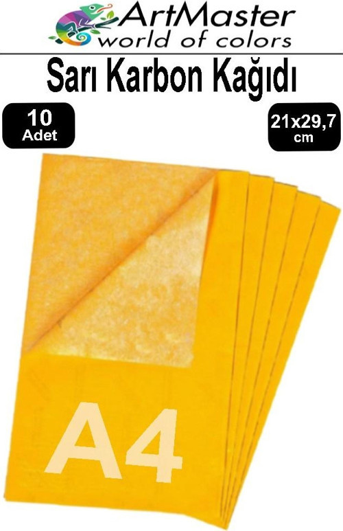 Ürün Adı: Artmaster Karbon Kağıdı A4 Sarı 10 Adet 21x29,7 cm Transfer Kağıdı Kopya Kağıdı Renkli Karbon Kağıdı Ahşap Seramik Metal Cam