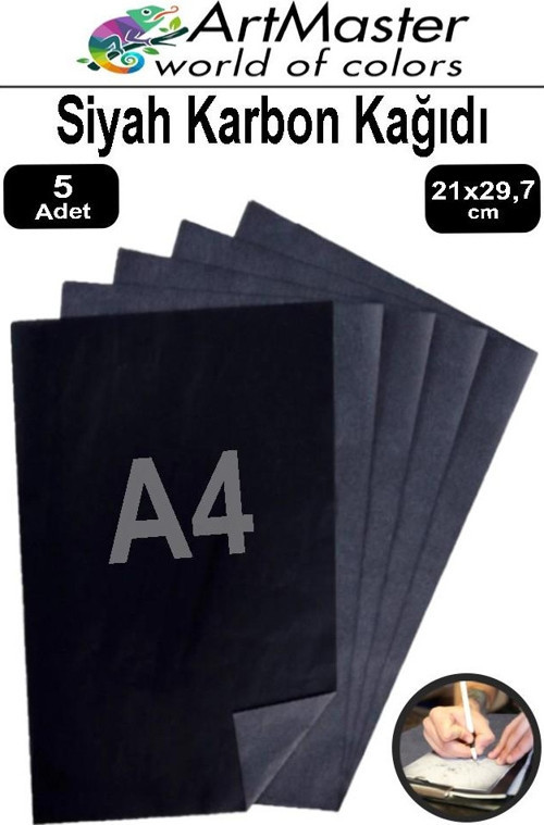 ArtMaster Karbon Kağıdı A4 Siyah 5 Adet 21x29,7 cm Transfer Kağıdı Kopya Kağıdı Renkli Karbon Kağıdı Ahşap Seramik Metal Cam