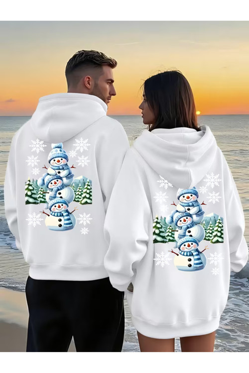 Kışın en eğlenceli ve romantik kombinlerinden biri! Kardan adam baskılı sevgili kombini hoodie, yılbaşı ruhunu yansıtan tasarımı ve rahat kalıbıyla çiftler için özel olarak tasarlanmıştır..