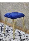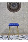 Zafir Kare Gold Kaplama Telli Ayaklı Tabure - Oturak - Bar Taburesi - Ayaklı Tabure Mavi Renk 48 x 33 Boyut/Ebat
