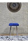 Zafir Kare Krom Kaplama Konik Ayaklı Tabure - Oturak - Bar Taburesi - Ayaklı Tabure Mavi Renk 48 x 33 Boyut/Ebat
