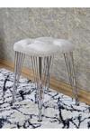 Zafir Kare Krom Kaplama Telli Ayaklı Tabure - Oturak - Bar Taburesi - Ayaklı Tabure Krem Renk 48 x 33 Boyut/Ebat