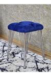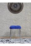 Zafir Kare Krom Kaplama Telli Ayaklı Tabure - Oturak - Bar Taburesi - Ayaklı Tabure Mavi Renk 48 x 33 Boyut/Ebat