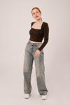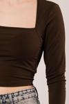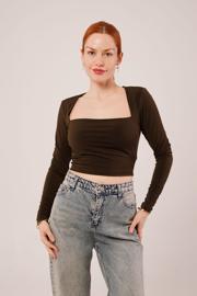 Kare Yaka Basic Kahverengi Bluz