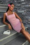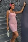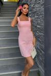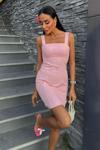 Zarif kare yaka tasarımı ile feminen bir görünüm sunar.