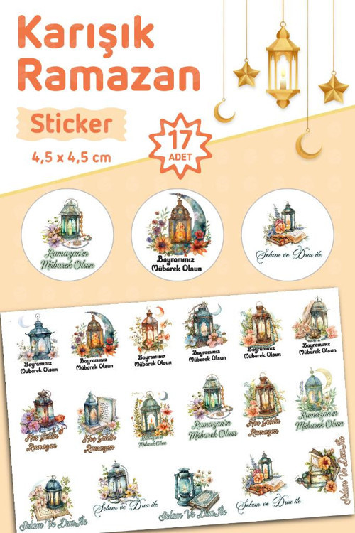 Karışık Ramazan Sticker Etiket Özel Kesimli 17 adet Ramazan Hediye Etiketi -T1554
