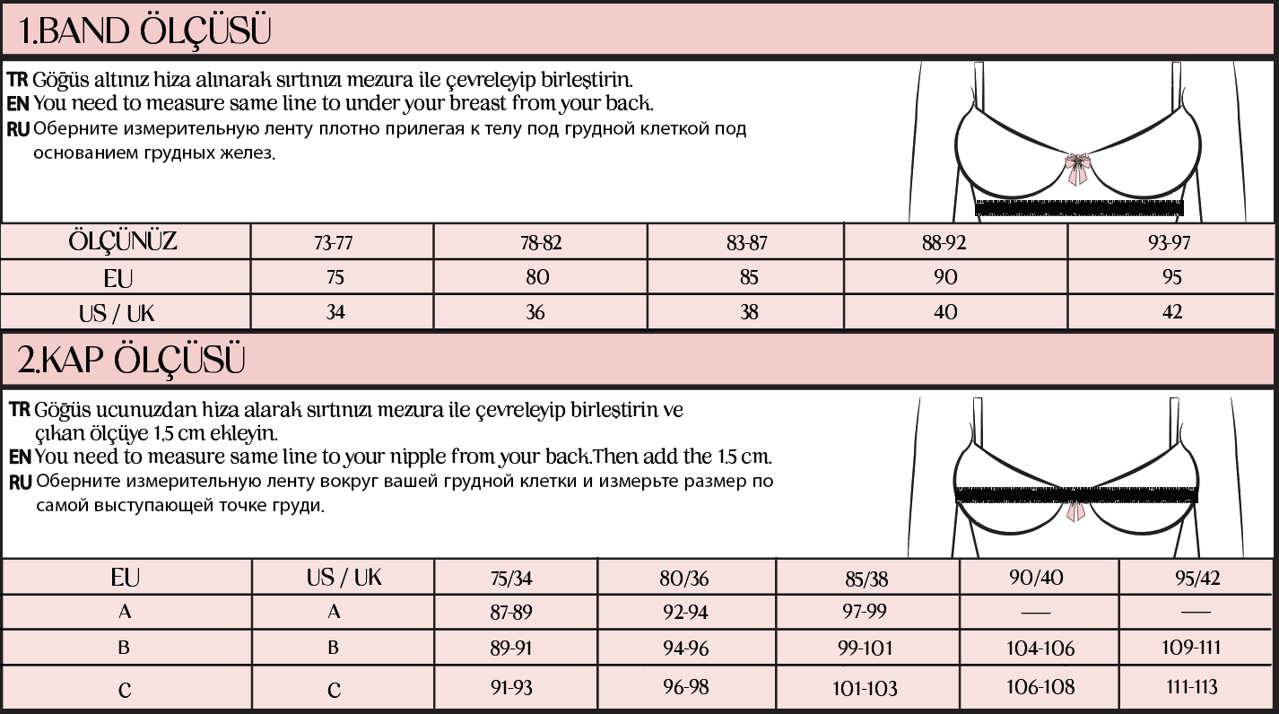 - Sütyen Beden:75B, Külot Beden: XS, Manken: Boy:174 cm, Göğüs: 85 cm, Bel: 62 cm, Kalça: 90 cm
