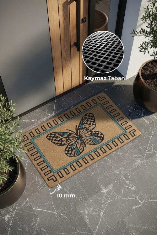 Karmat Kelebek Desenli, Modern Dayanıklı Uzun Ömürlü Dış Kapı Önü Paspası, Kaymaz Taban Desenli Paspas