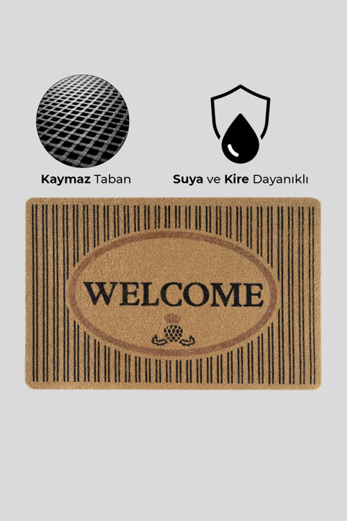 Karmat Welcome, Hoşgeldiniz, Modern Dayanıklı Uzun Ömürlü Kapı Önü Paspası, Desenli Paspas, Çeyiz Eşyası
