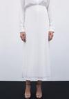 Yüksek ve lastikli bel, astarlı, pul payetli midi etek.