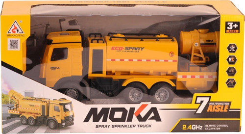 MOKA Spray Sprinkler Truck, gerçek temizlik araçlarından ilham alınarak tasarlanmış, şarjlı ve uzaktan kumandalı bir oyuncak kamyondur.