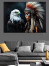 Kartal Ve Kızılderili Dekoratif Kanvas - Mdf Ahşap Tablo