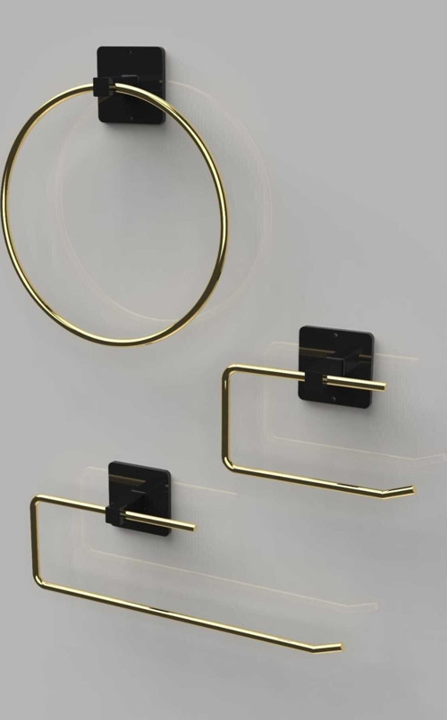 Karteya Yapışkanlı Paslanmaz Gold Rulo Havluluk Wc Kağıtlık ve Çember Havluluk Banyo Mutfak 3'lü Set