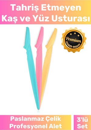 Premium Ergonomik Tahriş Etmez Tüy Yüz Epilasyon Aleti Bıyık Alma 3'lü Set Kaş ve Yüz Usturası - Image 1