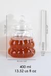 Acar Kaşıklı Borosilikat Cam Bal Kavanozu - Kapaklı Boncuk Şekilli Reçellik Bal Reçel Kavanozu 400ml