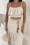 Takım içeriği: Kat detaylı bluz + uyumlu etek