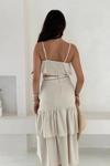 Akıcı kumaşı sayesinde gün boyu rahatlık sağlarken, katlı yapısı sayesinde hareketli ve zarif bir siluet oluşturur. Takım olarak kusursuz bir uyum sunarken, ayrı ayrı da farklı parçalarla kolayca kombinlenebilir.