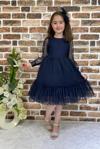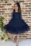 Katkat Prenses Dantel Tokalı Kız Çocuk Elbise MNK0306 LACİVERT