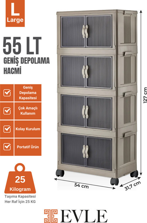 Evle Katlanabilir Modüler Dolap 4 Katlı 54 cm x 31,7 cm x 127 cm