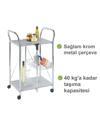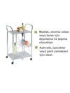 - Çok Yönlü Kullanım: Mutfak, banyo, yatak odası ya da verandada sehpa veya yardımcı servis arabası olarak kullanılabilir.