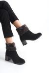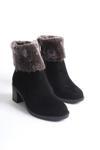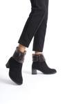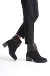 KATYA Fermuarlı Ortopedik Taban Topuklu Kürk Detaylı Süet Kadın Bot  SST - Siyah