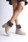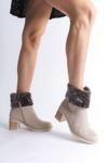 KATYA Fermuarlı Ortopedik Taban Topuklu Kürk Detaylı Süet Kadın Bot  STT - Ten