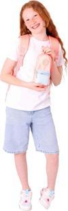 Somon rengi ve desen kumaşıyla tasarlanan bu set, 7 yaş ve üzeri kız çocuklar için idealdir. Hem okul hem de günlük kullanım için mükemmel bir kombinasyon sunar.