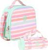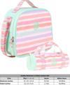 Kaukko Isı Yalıtımlı Beslenme Çantası ve Kalemlik Seti - Kız Çocuğuna Özel - Çizgi Desenli - Su Yeşili Pembe Renkli
