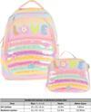Kaukko Kids Dört Bölmeli Okul Çantası ve Beslenme Çantası Seti - Simli Pullu Love Baskılı - Kız Çocuk (L5214+L7214)