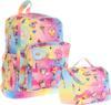 Kaukko Kids Dört Bölmeli Sırt Çantası ve Isı Yalıtımlı Beslenme Çantası Seti - Kız Çocuk - Mavi Sarı