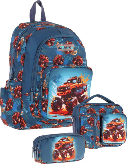 Kaukko Kids Erkek Çocuk Arazi Aracı Baskılı Üçlü Okul Çanta Seti(Okul Çantası+Beslenme Çantası+Kalemlik)