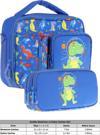 Kaukko Kids Erkek Çocuk Mavi Yeşil Dinazor Baskılı Üç Bölmeli Thermo Beslenme Çantası ve Kalemlik Seti (L7262+L8262)