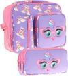Kaukko Kids Isı Yalıtımlı Beslenme Çantası ve Üç Bölmeli Kalemlik Seti - Lila Pembe - Kedi Baskılı