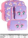 Kaukko Kids Kız Çocuk Lila Pembe Kedi Baskılı Üç Bölmeli Thermo Beslenme Çantası ve Kalemlik Seti (L7236+L8236)