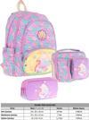 Kaukko Kids Üçlü İlkokul Çanta Seti - Pembe Yeşil - Denizkızı Nakışlı ve Baskılı