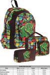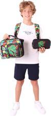 Kaukko Kids Üçlü İlkokul Çanta Seti - Siyah Yeşil - 3D Gergedan Detaylı
