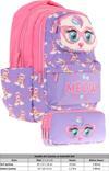 Kaukko Kids İlkokul Sırt Çantası ve 3 Gözlü Kalemlik Seti - 3D Kedi - Mor Pembe