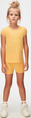 Kavun Sarı Basic Kız Çocuk Sıfır Yaka Karpuz Kol Tişört