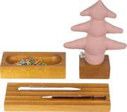 Bir adet kalemlik, organizer ve ağaç notluk beraber gelmektedir. 3 adet raptiye dahildir. Ahşap doğal bir malzeme olması sebebiyle desen ve renk farklılıkları gösterebilir.