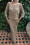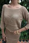 - Kayık yaka tasarımı ile modern ve şık bir görünüm sunar.; - Kahverengi tonlarındaki kahve rengi, her mevsim rahatlıkla tercih edilebilir.; - Düz deseni sayesinde sade ve zarif bir stil oluşturur.; - Regular kalıp ile gün boyu konforlu bir kullanım sağlar.; - Triko kumaşı, yumuşak dokusuyla cildinize nazikçe dokunur.; - Uzun boy kesimiyle bacaklarınızı olduğundan daha uzun gösterir.; - Standart bedeniyle farklı vücut tiplerine uyum sağlayarak geniş kullanıcı kitlesine hitap eder.; - Kısa kol tasarımı yaz ayları için idealdir; serin tutarken şıklığınızdan ödün vermezsiniz.; - Cool & comfort persona ile günlük kullanımda rahatlık ve tarzı bir arada yaşatır.; - Casual koleksiyon parçası olarak günlük kombinlerinizde kolayca yer bulur.; - Kayık yaka detayı ile feminen çizgiler ön plana çıkarken zarafeti de beraberinde getirir.; - İki parçadan oluşan set (bluz-etek) hem pratiklik hem de estetik açıdan bütünlük sunar.; - 30 derecede makinede yıkama imkanı sayesinde bakımının kolay olması avantajını yaşarsınız.; - %100 akrilik materyali ile dayanıklılığı artırırken aynı zamanda hafifliğiyle konforunuzu korur.
