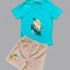 Kaykaycı Ayı Baskılı Şortlu Kısa Kollu Tişört 2li Erkek Bebek Takımı Turkuaz