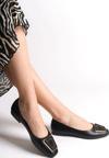 Kaylee Bağcıksız Ortopedik Rahat Taban Toka Detaylı Kadın Babet Ayakkabı - St Siyah