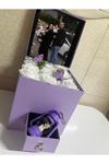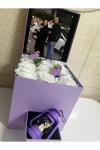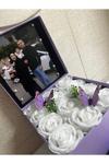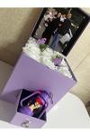 1 adet kişiye özel fotoğraf 1 adet ışıklı karküre kullanılmıştır kutu içerisinde 12 adet gül bulunmaktadır mor kelebeklerle süslenilmiştir