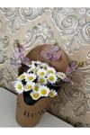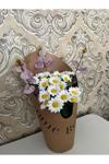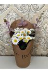 Saksı içerisinde papatya demetinden oluşmaktadır etrafı oküliptus ile renklendirilmiştir