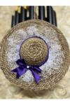 Hasır ipten yapılmıştır mor kurdele ile süslenmistir.