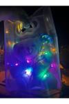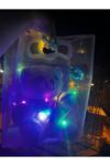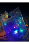 Sonsuzluk gülü tutan mavi peluş ayıcık vardır içerisine renkli led kullanılmıştır