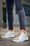 Kuback KB-007 Kuback Beyaz Bej Yüksek Taban Tek Bant Bağcıksız Günlük Erkek Ayakkabı
