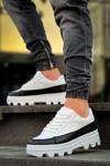 KB-056 Kuback Beyaz Siyah Detaylı Beyaz Yüksek Taban Günlük Spor Ayakkabı