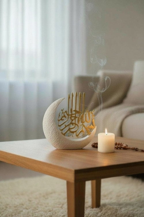 K&B Atölye Bismillah Yazılı Ay Modeli| Dekoratif İslami Masa Üstü Obje