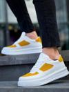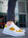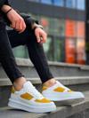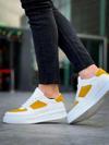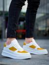 Morotonom KB-X8 Kuback Beyaz Cilt Sarı Süet Detaylı Beyaz Yüksek Taban Günlük Spor Ayakkabı